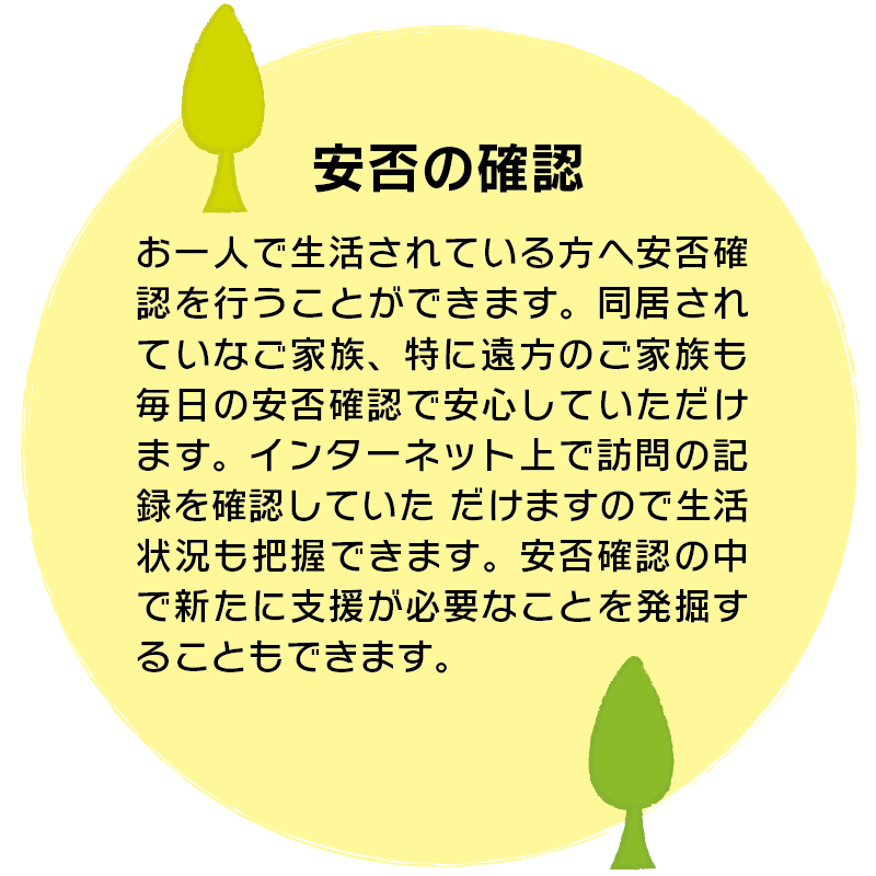 ミサトライフ定期巡回・随時対応サービスセンターでは、「ずっとあんしん」して自宅や地域で生活が送れるよう365日24時間対応でサポートいたします。